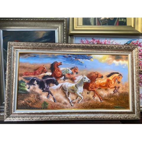 Peinture à l'huile artisanale moderne Cheval Feng Shui Returning to Success Box Frame Garantie de 36 mois avec base de support en toile